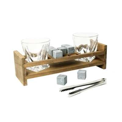 Two Twisted Design 250ml Capacity Tumblers in Wooden Holder with 8 Ice Stones and Stainless Steel Tongs A New Twist on the Classic Why not Present Your Evening Drinks in Style and Serve with Ice Cold Whisky Stones Made from Quality Glass, Granite Stone and Foodsafe Stainless Steel all Presented in a Stained Pine Wood Holder An Ideal Gift for People who Take Whisky Drinking Seriously or Setting the Mood and Makes a Great Talking Piece Completed Set Measures Around 31 cm by 13 cm by 10 cm | Freeze Ice Stones Separately | Hand Washing Only, Weight: 3.2187490252 pounds, Manufacturer: The Source Wholesale