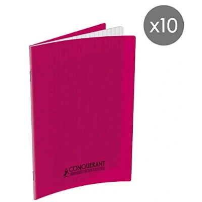 Conquerant Pack of 10 Classic Notebooks 17 x 22 cm Large Squared Seyès 96 Pages Stapled Polypropylene Cover Pink