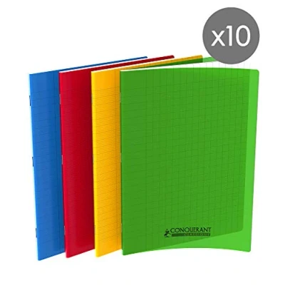 Conquerant Pack of 10 Classic Notebooks 24 x 32 cm Large Squared Seyès 96 Pages Stapled Polypropylene Cover Assorted Colours