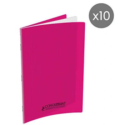Conquerant Pack of 10 Classic Notebooks A4 Large Squared Seyès 96 Pages Stapled Polypropylene Cover Pink