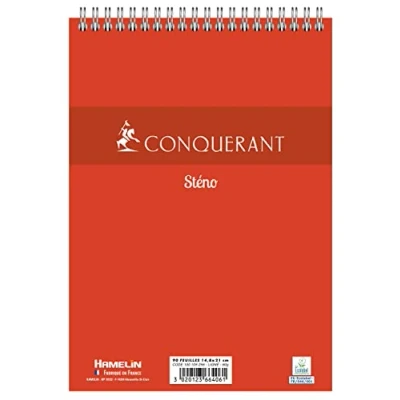180 detachable pages - thickness 60 g Line ruler, spaced 7 mm Spiral binding Offset card cover, 170 g thick Cover colour: red