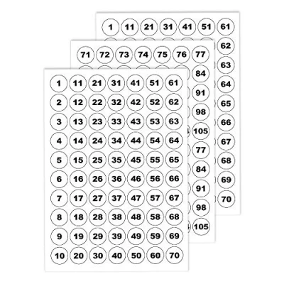 Round Consecutive Numbering Stickers (1-105) with 25 mm. Self-Adhesive Sequential Numbers Circle white Labels with Black Numbers. You will receive White background with Black Bold Font Only(Without Border)."In product Image Black Border Only for Illustration Purpose". Our Numbers Stickers Stick & Hold Very Well at any Flat Dry Surface, Ideal office neat works like as Sorting, Organizing, Storage, Identifying, etc… Fast & Prompt Delivery from UK Manufacturers. Ideal for Professional Finish with Numbering To Storage boxes, desks & file,Identifing batteries, memory cards ,To Organize Plastic Bobbins & DMC threads, packaging, Etc... Prompt delivery, made in the UK.