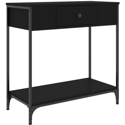 ManoManoGeneral description Add a touch of elegance to your entryway, living room, or hallway with this stylish console table. Made of high-quality engineered wood, it features a smooth surface that is durable, stable, and resistant to moisture. The table is easy to clean and offers ample storage space for magazines, books, decorative items, and other daily essentials, keeping them well-organized and within reach. The metal frame adds an industrial style while ensuring durability and stability. Technical specifications Colour: Black Material: Engineered wood, metal Dimensions: 75 x 34.5 x 75 cm (L x W x H) Assembly required: Yes Installation This product must be used with the provided wall attachment device to prevent it from being overturned. Other information