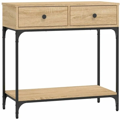 General description Add a touch of elegance to your entryway, living room, or hallway with this stylish console table. The hall table is made of engineered wood, which is of exceptional quality, featuring a smooth surface along with strength, stability, and resistance to moisture. The sturdy metal frame ensures stability, while the ample storage space with drawers and a shelf keeps your daily essentials well organized and within reach. The sturdy tabletop is perfect for placing framed photos, potted plants, and other decorative items. Technical specifications Colour: Sonoma oak Material: Engineered wood, metal Dimensions: 75 x 34.5 x 75 cm (L x W x H) Assembly required: Yes Other information Warning: To prevent it from being overturned, this product must be used with the provided wall attachment device. SKU: 833399