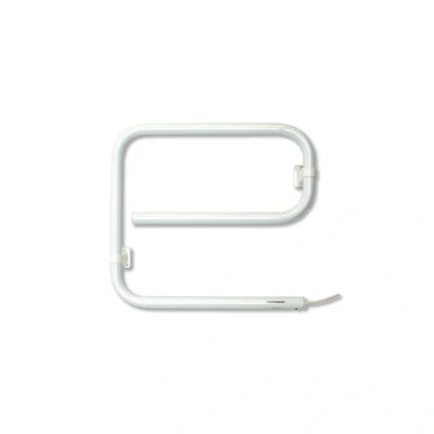 40W electric heated towel rail in white with adjustable wall brackets and a 1m fitted cable. Double-insulated Class II construction removes the need for supplementary bonding. Compact and lightweight at 410mm H x 460mm W x 85mm D (3kg), with IP24 splash protection, overheat protection and wall fixing kit included. 40W low-energy electric towel rail with fitted cable. Double-insulated Class II design eliminates need for supplementary bonding. Compact dimensions: 410mm H x 460mm W x 85mm D; weight 3kg. Includes adjustable wall brackets for flexible mounting positions. Very economical to run. Supplied with a 1m fitted supply cable for straightforward installation. IP24 splash-proof rating suitable for bathroom installation.