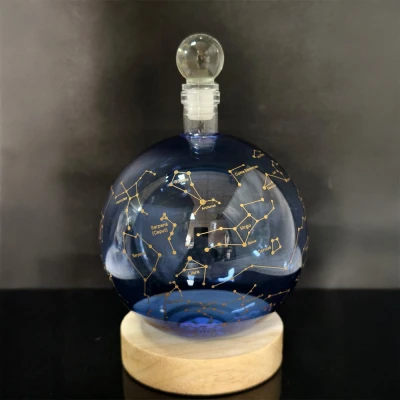 AmazonBar Originale Constellation Globe Decanter with Colour Changing LED Lights Elevate your home bar with the Bar Originale Constellation Globe Decanter — a stunning fusion of craftsmanship and celestial charm. This elegant glass decanter features an etched globe design with starry constellations, rotating gently on a wooden stand for added impact. Perfect for whisky, rum, or your spirit of choice, with a generous capacity, it comes with a secure glass stopper to preserve freshness. A striking gift for explorers, stargazers, or those who appreciate stylish barware with a cosmic twist. Hand-blown glass decanter with etched constellation and globe design Rechargeable wooden base with LED lighting, Weight: 0.5621787681 Pounds, Manufacturer: Original Products (Marylebone) Limited