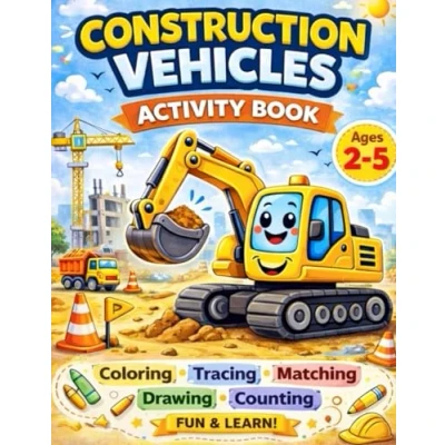 Construction Vehicles Activity Book for Kids Ages 25: Coloring, Tracing, Matching, Drawing and Counting Fun