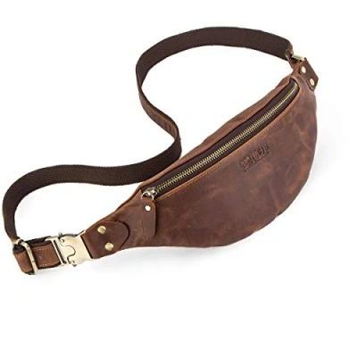 CONTACTS Genuine Leather Mens Chest Bag,Leather bumbag for Women,Waist Phone Pouch Hiking Fanny Pack Men (Coffee)