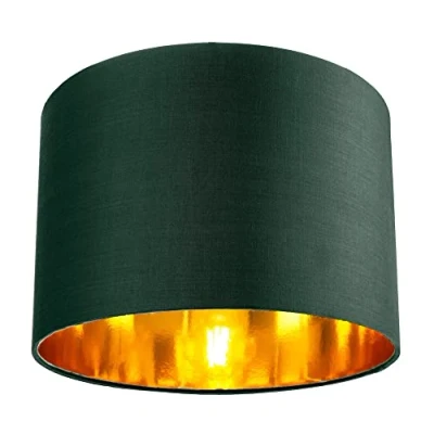 Contemporary and stylish high quality circular drum shape lamp shade. Made of high quality forest green cotton fabric with unique shiny copper paper inner creating a stunning effect when the light bulb is switched on. The product dimensions are: Height - 18cm, Top diameter - 25cm, Bottom diameter - 25cm. Maximum wattage allowed is 60w. Features a reversible gimbal allowing usage for both table lamps and pendant ceiling roses. Please note that only one shade is included. Complete with shade reducer ring allowing for most lamp lamp bases - B22/BC, E14/SES and E27/ES. Light bulb not included., Weight: 1.212542441 Pounds, Manufacturer: Happy Homewares