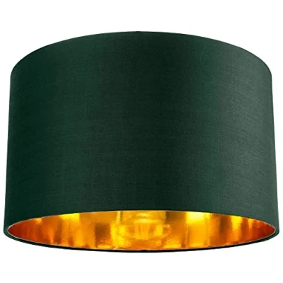 Contemporary and stylish high quality circular drum shape lamp shade. Made of high quality forest green cotton fabric with unique shiny copper paper inner creating a stunning effect when the light bulb is switched on. The product dimensions are: Height - 22cm, Top diameter - 35cm, Bottom diameter - 35cm. Maximum wattage allowed is 60w. Features a reversible gimbal allowing usage for both table/floor lamps and pendant ceiling roses. Please note that only one shade is included. Complete with shade reducer ring allowing for most lamp lamp bases - B22/BC, E14/SES and E27/ES. Light bulb not included., Weight: 2.0282528104 pounds, Manufacturer: Happy Homewares