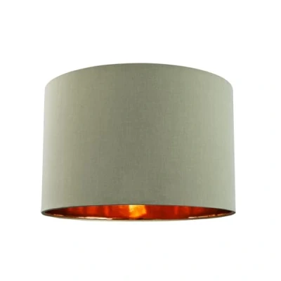 Contemporary and stylish high quality circular drum shape lamp shade. Made of high quality olive green cotton fabric with unique shiny copper paper inner creating a stunning effect when the light bulb is switched on. The product dimensions are: Height - 18cm, Top diameter - 25cm, Bottom diameter - 25cm. Maximum wattage allowed is 60w. Features a reversible gimbal allowing usage for both table lamps and pendant ceiling roses. Please note that only one shade is included. Complete with shade reducer ring allowing for most lamp bases - B22/BC, E14/SES and E27/ES. Light bulb not included., Weight: 1.322773572 Pounds, Manufacturer: Happy Homewares