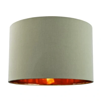 Contemporary and stylish high quality circular drum shape lamp shade. Made of high quality olive green cotton with unique shiny copper paper inner creating a stunning effect when the light bulb is switched on. The product dimensions are: Height - 20cm, Top diameter - 30cm, Bottom diameter - 30cm. Maximum wattage allowed is 60w. Features a reversible gimbal allowing usage for both table lamps and pendant ceiling roses. Please note that only one shade is included. Complete with shade reducer ring allowing for most lamp lamp bases - B22/BC, E14/SES and E27/ES. Light bulb not included., Manufacturer: Happy Homewares