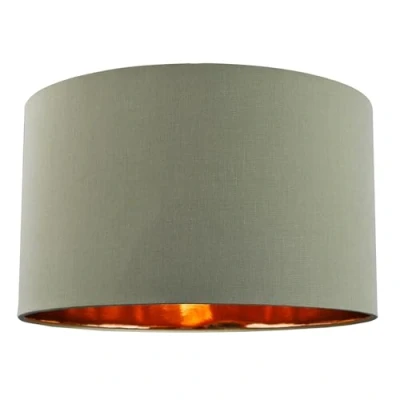 Contemporary and Chic Olive Green Cotton 20" Floor or Pendant Large Circular Drum Lamp Shade with Shiny Copper Inner 50cm x 30cm by Happy Homewares