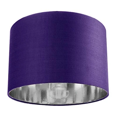 Contemporary and stylish high quality circular drum shape lamp shade. Made of high quality purple cotton with unique shiny silver paper inner creating a stunning effect when the light bulb is switched on. The product dimensions are: Height - 20cm, Top diameter - 30cm, Bottom diameter - 30cm. Maximum wattage allowed is 60w. Features a reversible gimbal allowing usage for both table lamps and pendant ceiling roses. Please note that only one shade is included. Complete with shade reducer ring allowing for most lamp lamp bases - B22/BC, E14/SES and E27/ES. Light bulb not included., Weight: 1.6314207388 pounds, Manufacturer: Happy Homewares