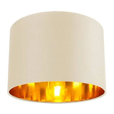 Contemporary and stylish high quality circular drum shape lamp shade. Made of high quality soft cream cotton with unique shiny copper paper inner creating a stunning effect when the light bulb is switched on. The product dimensions are: Height - 20cm, Top diameter - 30cm, Bottom diameter - 30cm. Maximum wattage allowed is 60w. Features a reversible gimbal allowing usage for both table lamps and pendant ceiling roses. Please note that only one shade is included. Complete with shade reducer ring allowing for most lamp lamp bases - B22/BC, E14/SES and E27/ES. Light bulb not included., Weight: 1.653466965 pounds, Manufacturer: Happy Homewares
