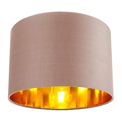 Contemporary and stylish high quality circular drum shape lamp shade. Made of high quality taupe cotton with unique shiny copper paper inner creating a stunning effect when the light bulb is switched on. The product dimensions are: Height - 20cm, Top diameter - 30cm, Bottom diameter - 30cm. Maximum wattage allowed is 60w. Features a reversible gimbal allowing usage for both table lamps and pendant ceiling roses. Please note that only one shade is included. Complete with shade reducer ring allowing for most lamp lamp bases - B22/BC, E14/SES and E27/ES. Light bulb not included., Weight: 1.6755131912 pounds, Manufacturer: Happy Homewares