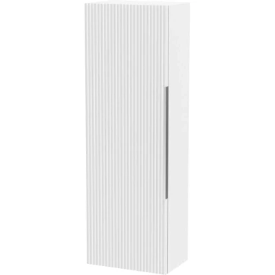 Contemporary Fluted 400mm Tall Wall Hung Bathroom Storage Unit with Single Soft Close Door, Satin White