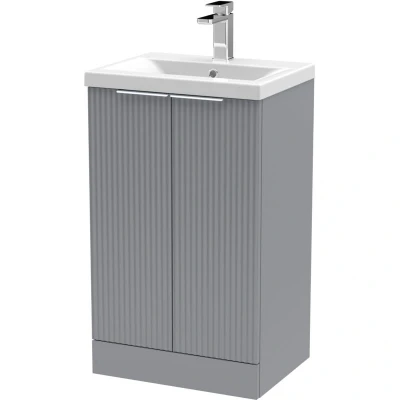 Contemporary Fluted Front Floor Standing 2 Door Bathroom Vanity Unit with 1 Tap Hole Ceramic Basin, 500mm, Satin Grey