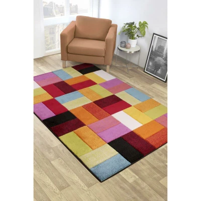 General description This Spectra Carved Largo Geometric Rainbow Bright Multi-Coloured Soft Rug measures 120 x 170 cm (4'x5'6') and is designed to enhance the decor of your home or office with its vibrant and elegant colors. The rug features a variety of traditional and modern patterns, making it a perfect addition to any interior setting. The hand-carved finish adds depth and detail, creating a stunning focal point in any room. Technical specifications Material: 100% Polypropylene Dimensions: 120 x 170 cm (4'x5'6') Durable and comfortable pile Hard-wearing and stain-resistant Compatibility and accessories Suitable for various rooms: Dining Room, Living Room, Bedroom, Home/Office, Conservatories, Guestroom, Basement, Lounge, Caravan Usage Vacuum with no attachment, just suction Shake thoroughly outside for cleaning Other information Part of the Spectre Rugs collection Available in multiple sizes: 80 x 150 cm, 120 x 170 cm, 160 x 230 cm, 66 x 230 cm (Runner), 133 x 133 cm (Round)