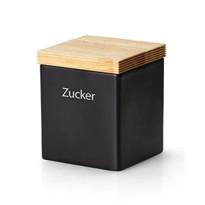 Continenta Ceramic Storage Container, Ideal for Supplies and with Airtight Seal, Handmade in Portugal, Black, 800 ml (10 x 10 12.5 cm)