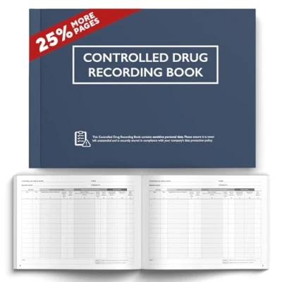 Controlled Drugs Book for Compliance: Tracks drug use, returns and stock - ideal for care homes, clinics, first aid and workplace settings. DATE & TIME for Every Entry: Ensures accurate, audit-ready logs with full traceability of controlled drug administration. CQC, HSE & GDPR Compliant Medication Log Book: Structured for use in regulated healthcare - supports safe, legal record keeping. Inspection-Ready with Required Contact Fields: Includes sections for CDLO, CDAO, DPO & more - keeps essential controlled drug info together for quick audits and full compliance. 25% More Pages: Controlled Drugs Book with 125 Pages - Spacious medication log book with room for 1,500+ entries - built for long-term, compliant drug recording.
