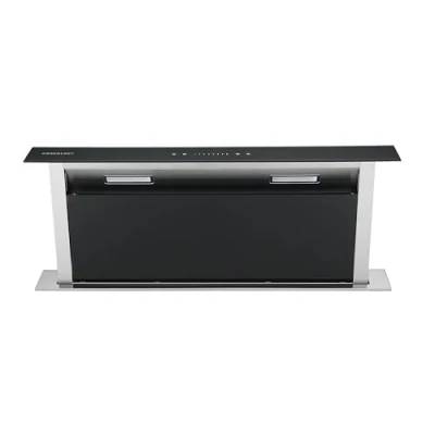 The CDD90 is our most popular and best selling Cookology downdraft cooker hood, featuring a centre panel with touch controls for a Sleek, Cutting Edge Designer Downdraft Extractor. It will only work with electric hobs and cannot be installed next to gas hobs. The ACF905 carbon filter is now available (sold separately), so you now have a choice between venting outside or recirculating the air back into your kitchen. This hood is sure to impress your guests with its gorgeous design, high quality build and professional performance. A Downdraft Cooker Hood gets built into your Kitchen counter. When its not being used, all you see is a flat, elegant strip of glass with Touch Controls that looks great next to a Ceramic or Induction Hob. When holding your finger for 2 seconds on the touch controls, the Downdraft elegantly rises up, and starts extracting smoke and smells to keep your kitchen smelling fresh and prevent grease and grime from Building up over your units whilst cooking. You also get LED Lighting that bathes your cooking area in a cool, white light, adding a touch of class to a modern kitchen - with this Downdraft Island Extractor you can also adjust the intensity of the LED Lights using the touch controls and create the right ambience in your kitchen.