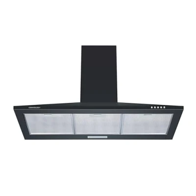 Powerful Extraction - 312.6m3/h strong suction power is enough to effortlessly remove smells, smoke and steam from your kitchen. The 150mm ducting hole removes a larger volume of air, resulting in a cleaner, clearer kitchen and keeps cupboards free from grease and grime. Energy Efficient and Quiet - Rated A for Efficiency and with an energy consumption rate of just 21kWh/a, this cooker hood provides superb kitchen extraction at a low noise of only 67dB. Easy to Install - The height adjustable stainless steel chimney section makes it easy to fit your kitchen. UK 3-pin Plug, no hardwiring needed. Dimensions (cm) : W90 x D47.5 x H58-96 Dual Ventilation Modes - Choose from internal recirculation or external ducting. Internal circulation method uses carbon filters to clean the air before it goes back into your kitchen through vents in the cooker hood. Outdoor venting removes air outside via a ducting kit. The carbon filters and ducting kits are not included in this listing. Featuring multi-layered aluminium washable grease filters, bright LED lighting and 3 speed settings, the CH900BK/A black kitchen extractor provides both style and performance.