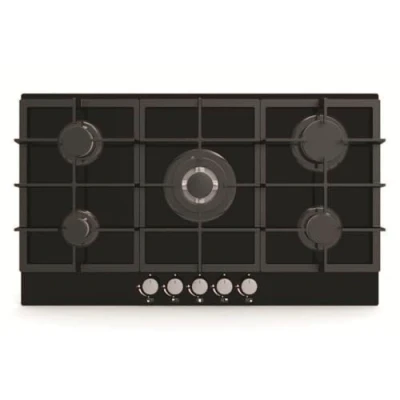 90CM GAS HOB FOR LARGER COOKING - A wide 90cm gas on glass hob with five burners and a 3.5kW wok burner. Ideal for larger cookware and multi-dish meals, offering generous space for busy households and frequent cooking. CAST IRON PAN SUPPORTS FOR STABILITY - Cast iron supports provide stable pan placement for daily use, especially with larger pots. Designed to suit frequent cooking while keeping a clean, integrated look on the glass surface. AUTO IGNITION WITH FRONT CONTROLS - Front controls give easy access to flame adjustment and include auto ignition for quick start-up. Practical for fitted kitchens and installed cooktops where ease of use is important. FLAME SAFETY DEVICE BUILT IN - Designed with flame safety to help stop the gas supply if the flame goes out. A helpful safety feature for everyday cooking and family kitchens using installed hobs. LPG KIT SUPPLIED & 830 X 480MM CUT-OUT - Supplied with an LPG conversion kit and designed to fit an 830 x 480mm cut-out. Black glass finish pairs well with ovens, extractor fans and integrated kitchen appliances.