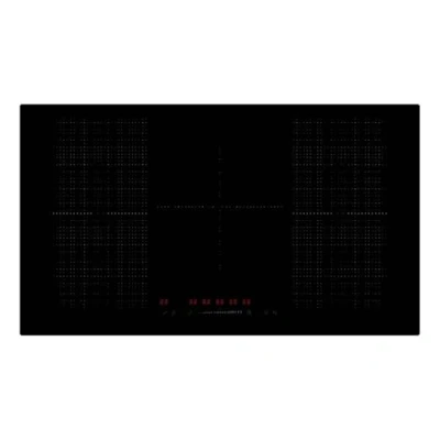 WIDE FLEX INDUCTION HOB WITH 5 ZONES - A 90cm flex induction hob designed for larger kitchens, offering five zones including four flexible areas for bigger cookware. Ideal for multi-pan cooking and busy meal preparation on fitted kitchen worktops. FLEXIBLE ZONES FOR LARGE COOKWARE - Flexible cooking zones adapt to different pan sizes, supporting larger pots and grills. Great for batch cooking and family meals where you need more space across your cooktops. 14 POWER LEVELS WITH BOOST - Use touch slider controls to adjust heat smoothly across 14 levels, with Boost for fast boiling and quick changes. Designed for responsive cooking and efficient everyday use. KEEP WARM & TIMER FUNCTIONS - Keep Warm helps hold food ready to serve, while the timer supports precision control. Useful for preparing multiple dishes and managing cooking times more easily. CHILD SAFETY LOCK & STANDARD INSTALL SIZE - Includes child safety lock and residual heat indicators for everyday safety. Fits a 840 x 490mm cut-out and finishes in black for a coordinated look alongside ovens and integrated appliances.