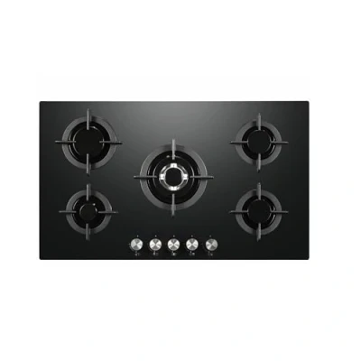 Cookology GGH906BK Gas Hob on Glass 90cm Built In 5 Burners Powerful Wok Burner and Cast Iron Pan Supports Auto Igniton Black
