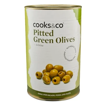 AmazonGreen pitted Olives in brine. Ready to be used in cooking, to garnish a Martini or served as a table snack. Perfect when sliced for topping a pizza, adding to a puttanesca sauce, tossed through a salad or blitzing to make a tapenade.
