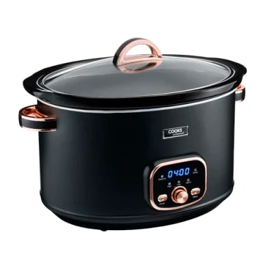 Cooks Professional Digital Slow Cooker 8L 2 Heat Settings plus Keep Warm Function Removable Easy Clean Ceramic Bowl Black/Rose Gold