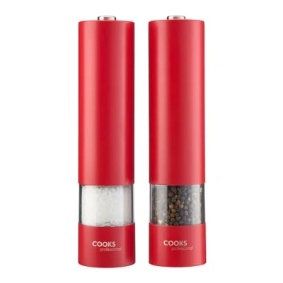 Cooks Professional Electric Automatic Salt and Pepper Mill Set Battery Operated Grinders Adjustable Grinding & One Touch Button Condiment Grinder Red