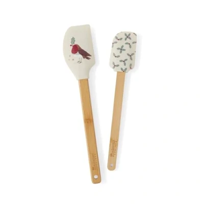 Cooksmart Christmas Robins Retreat Set of 2 Spatulas Rubber and Silicone Kitchen for Cooking & Baking Durable Utensils Essential Tools Everyday Use