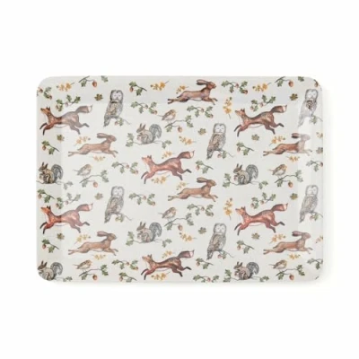 Cooksmart Forest Fable Large Tray British Designed Woodland Animal Print Durable & Lightweight Melamine Blend Decorative Serving for Drinks Snacks Wipe Clean Only