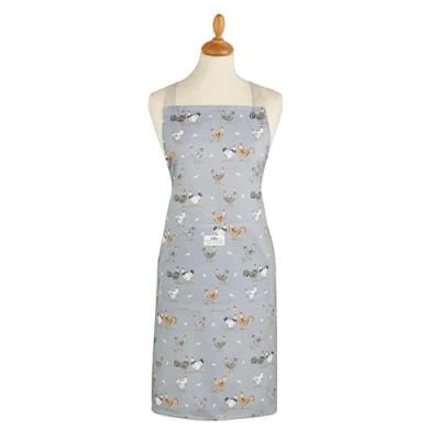 Cooksmart Hen House Lane Apron British Designed 100% Cotton Kitchen Farmhouse Inspired Sage Grey Design Hardwearing & Stylish Cooking Aprons Machine Washable