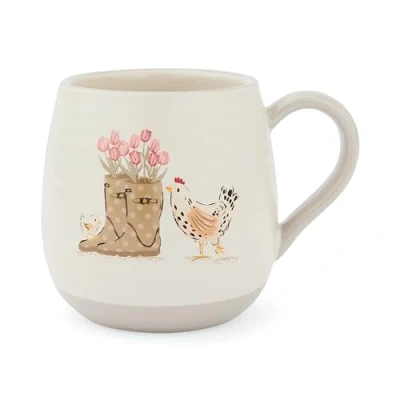 Cooksmart Hen House Lane Belly Mug British Designed Farmhouse Coffee Ribbed Stoneware Tea Cup Embossed & Rooster Design Dishwasher Microwave Safe 400ml