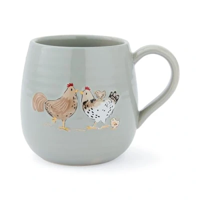 Cooksmart Hen House Lane Sage Belly Mug Farmhouse Stoneware Coffee Cup Ribbed & Embossed Design Rustic Tea for Home Kitchen Dishwasher Microwave Safe 400ml
