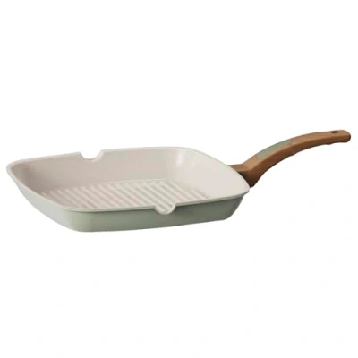 Cooksmart Signature 28cm Grill Pan Cast Aluminium Non Stick PFOA & PFAS Free Induction, Gas, Electric Hob Compatible Dishwasher Safe Ergonomic Handle (Sage Green)