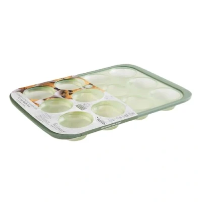 Cooksmart Signature Smart Flex 12 Cup Muffin Tray Silicone Non Stick Oven, Freezer & Dishwasher Safe BPA Free Flexible Durable Green