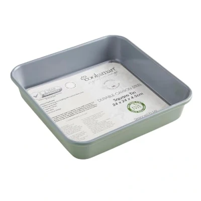 Cooksmart Signature Two Tone Square Tin 24cm Cast Aluminium PFOA Free Non Stick Dishwasher Safe Elegant Green Design Ideal for Cakes & Roasts