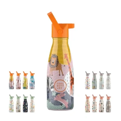 Cool Bottles Savannah Kingdom Thermos Flask for Children, 260 ml, Stainless Steel Water Bottle, Cold Drinks 36 Hours and Hot 18 Hours, Colour Embossing, BPA Free