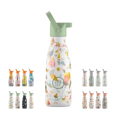 Cool Bottles Thermos Flask for Children 260 ml Spring Flowers Stainless Steel Water Bottle Cold Drinks 36 Hours and Hot 18 Colour Embossing BPA Free