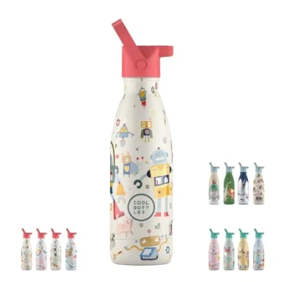 Cool Bottles Thermos Flask for Children Stainless Steel Water Bottle 350 ml Messy Robots Cold Drinks 36 Hours and Hot 18 BPA Free