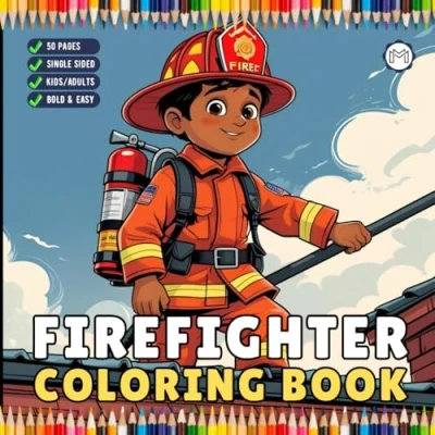 Cool Firefighter Coloring Book Gift for Adults Men Women Kids Boys Girls Teens Bold and Easy Stress Relief 50 Pages Single ... Sheets Students Young Children