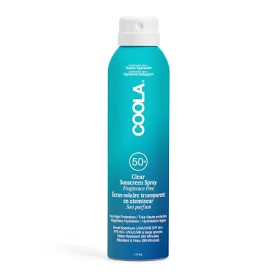 70%+ organic sun cream SPF 50 Broad spectrum SPF 50 UVA/UVB protection Lightweight mist application, ideal for outdoor activities 80 minute water resistance Fragrance-free COOLA sunscreen Continuous spray application Antioxidant enriched sun cream spray Vegan Hawaii Reef Compliant (Act 104) Free From Oxybenzone & Octinoxate