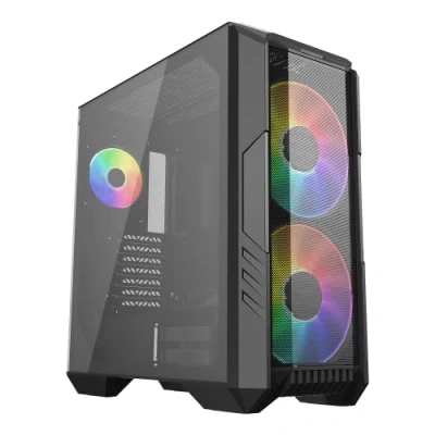 Mesh Front Panel: Large filtered intakes promotes high airflow, keeping internal components running at optimal temperature. Dual 200mm ARGB Fans: The HAF series iconic 200mm ARGB fans move high volumes of air quietly and effectively due to their large size. Rotatable GPU Fan: A 120mm rotatable fan positioned on top of the HDD cage, provides dedicated GPU cooling to ensure maximum performance. USB 3.2 Gen 2 Type C Support: USB 3.2 Gen 2 Type C ports built into the I/O panel allows multi-purpose, streamlined data transmission. Screwless & Tool-Free TG Side Panel Design: The tempered glass side panel is secured with pins for easy removal without the use of tools.