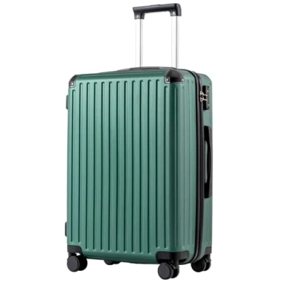COOLIFE Suitcase Trolley Carry on Hand Cabin Luggage Hard Shell Lightweight ABS Material with TSA Lock Telescopic Handle and 4 Dual Spinner Wheels (Dark Green, 24 Inch)