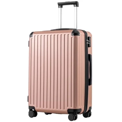 COOLIFE Suitcase Trolley Carry on Hand Cabin Luggage Hard Shell Lightweight ABS Material with TSA Lock Telescopic Handle and 4 Dual Spinner Wheels (Rose Gold, 24 Inch)
