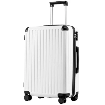 COOLIFE Suitcase Trolley Carry on Hand Cabin Luggage Hard Shell Lightweight ABS Material with TSA Lock Telescopic Handle and 4 Dual Spinner Wheels (White, 24 Inch)